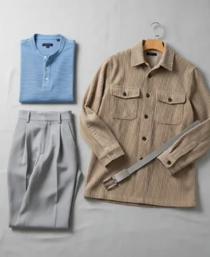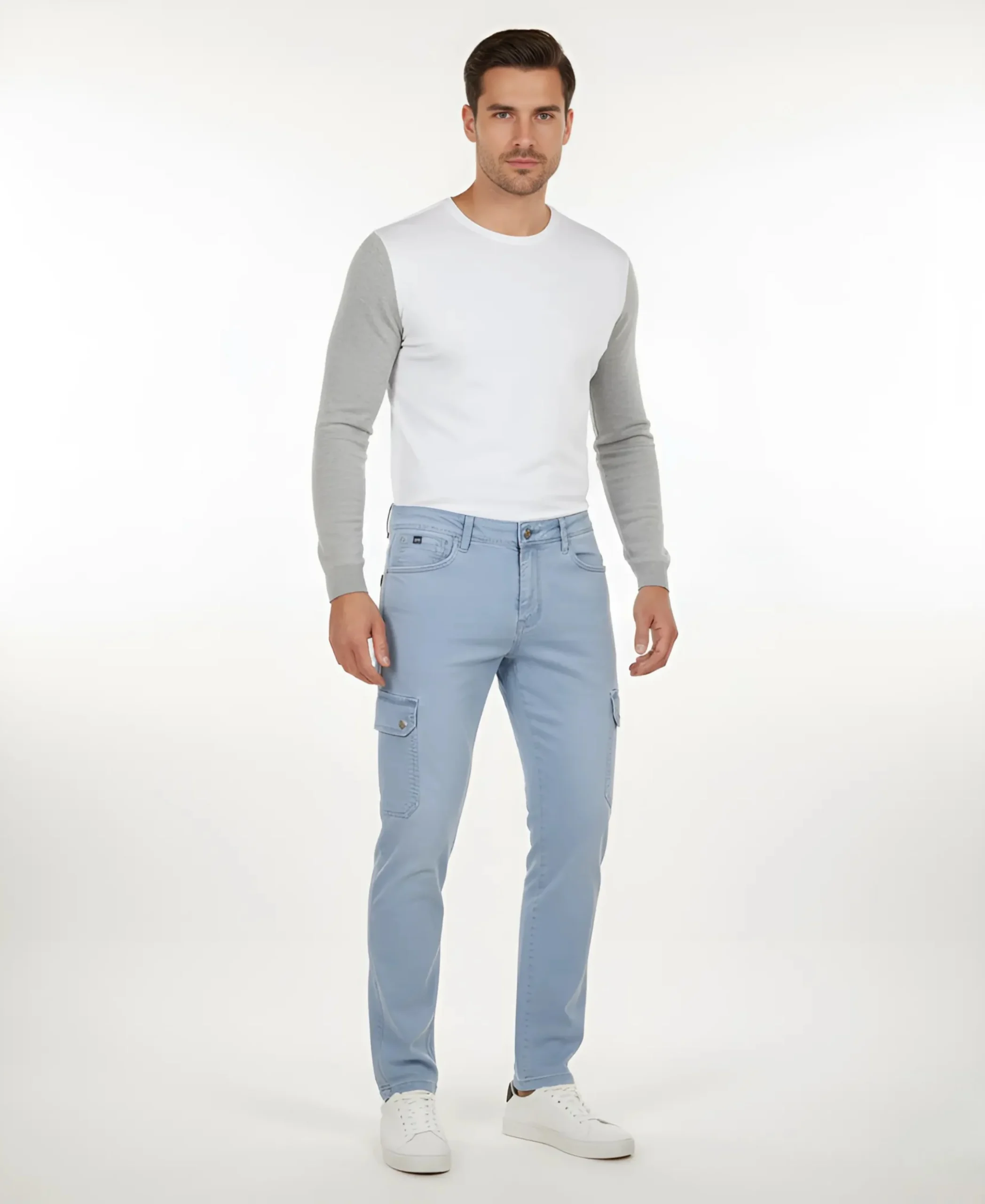 Men’s Slim-Fit Light Blue Cotton Cargo Trousers – Casual Utility Pants | John Vesture
