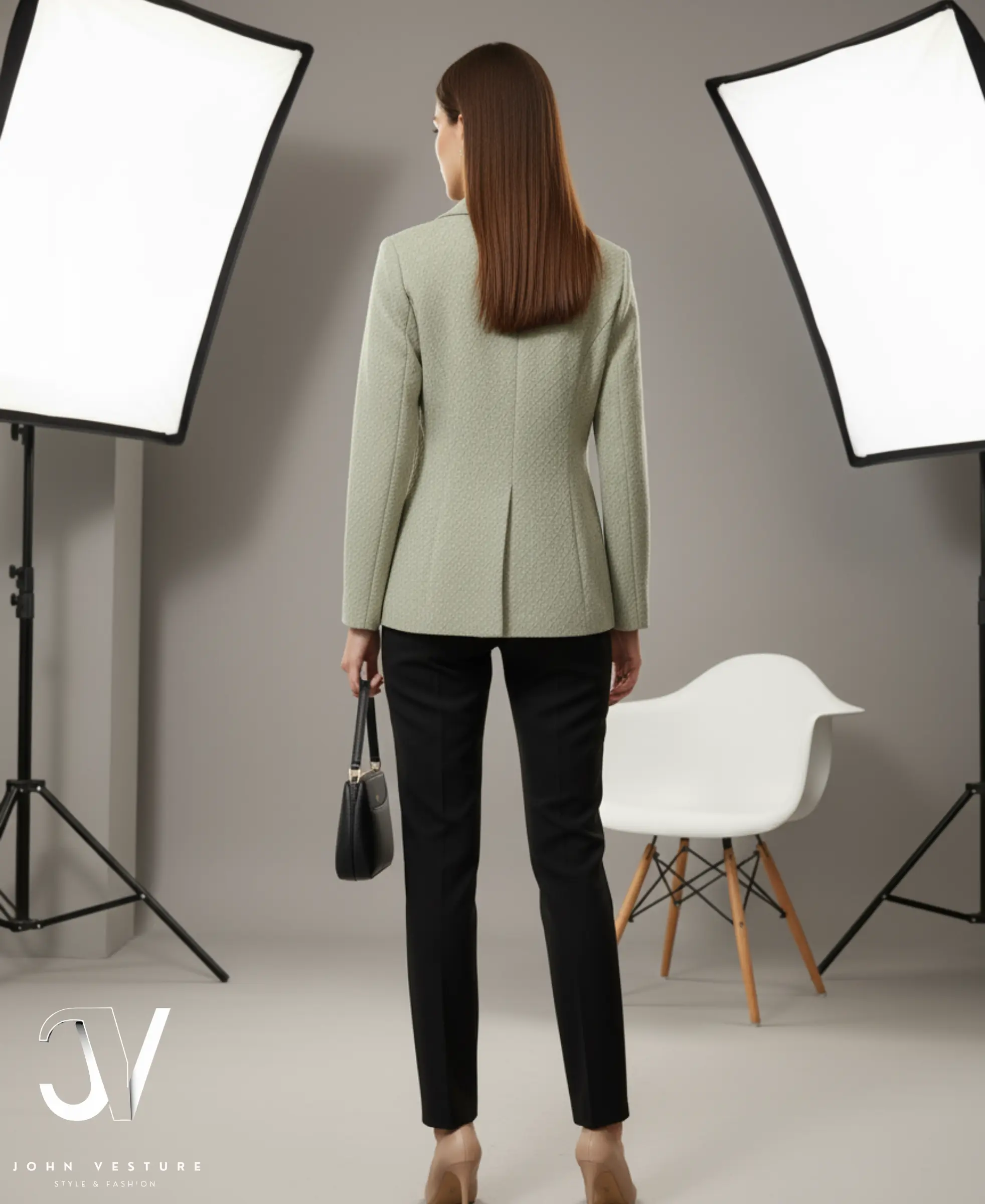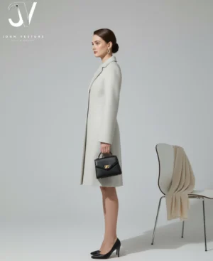 - Pockets: Discreetly designed welt pockets (as evidenced by the model’s hand placement), maintaining a clean, streamlined look.